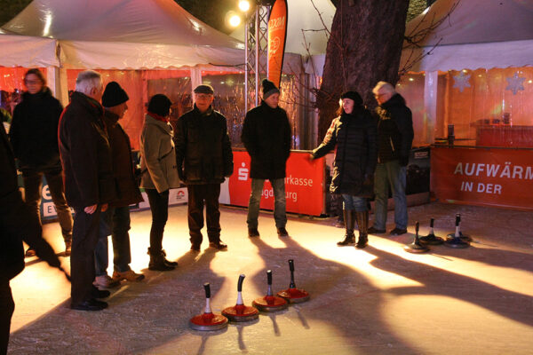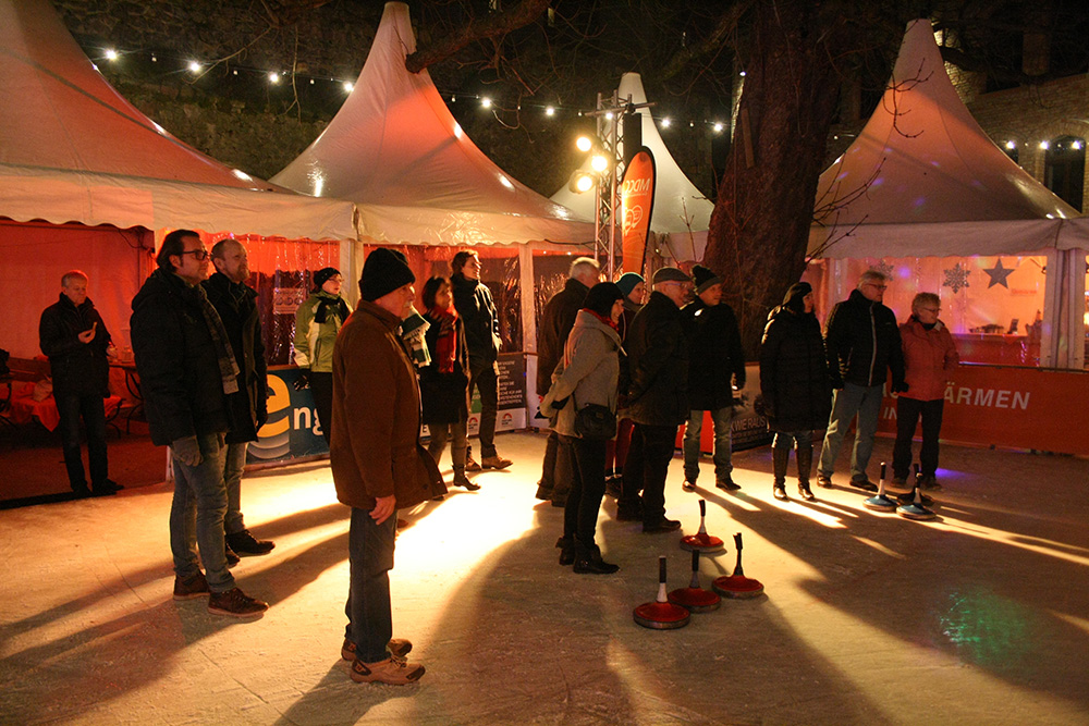 In Kooperation mit der Festung Mark möchten wir auf einer Eisbahn das Eisstockschießen vertiefen, um dann einen vergnüglichen Wettkampf durchführen zu können. Wir beginnen um 18.30 Uhr mit einem Begrüßungsgetränk im Kaminzimmer, starten 19.00 Uhr auf der Eisbahn (ohne Schlittschuhe!) und beschließen den Abend gegen 21.30 Uhr.
